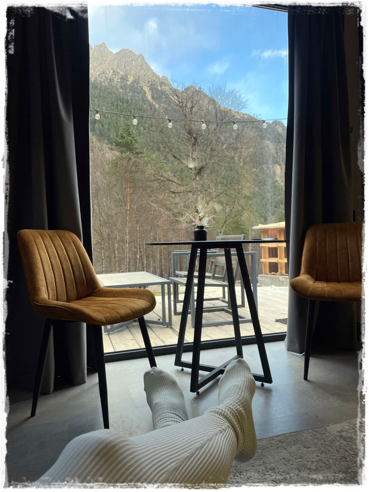 Отель ROOTS я мониторила несколько месяцев, чтобы не упустить свободные номера в праздничные дни. Очень уж люблю сочетание современного и нового жилья, и нетронутой природы. Отель в этом плане соответствовал всем моим запросам — вокруг ничего и никого, только утренний горный туман, пение птиц и ночной стук дождя по стеклянной крыше. НО!!! Так выглядит отель в мае 2025 года и в настоящее время здесь строится огромный новый корпус. Как мне кажется, цельное трехэтажное здание никак не вписывается в концепцию единения с природой. Поэтому ссылку на сайт отеля оставляю, но настоятельно рекомендую перед поездкой отзывы почитать. Так как, понятное дело, заработать все хотят и строительство нового корпуса финансово обосновано. Но, боюсь, что свою прелесть территория от этого потеряет. Мне же повезло и спокойному отдыху ничто не помешало. Кроме строительного шума, конечно, но работали ребята строго с 9 до 18 и в домике их было совсем не слышно.