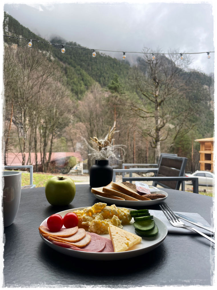 Итак, прилетев в обед во Владикавказ я сразу же села в заказанную заранее машину и двинулась в сторону гор. Знаю, что сам город красивый и определенно заслуживает внимания, но у меня времени было не так много и, выбирая между цивилизацией и природой, я всегда отдаю предпочтение последней. Пара часов в пути и вот я уже в месте своего первого обитания в Республике Северная Осетия — Алания.