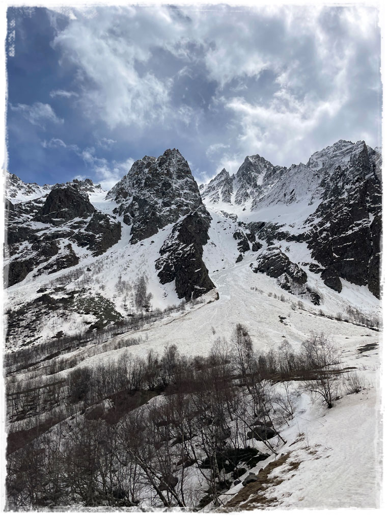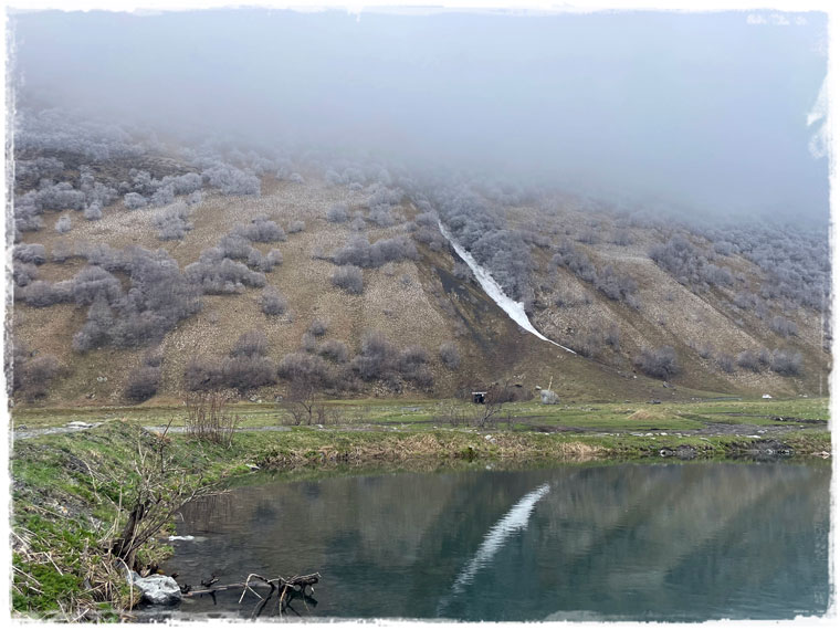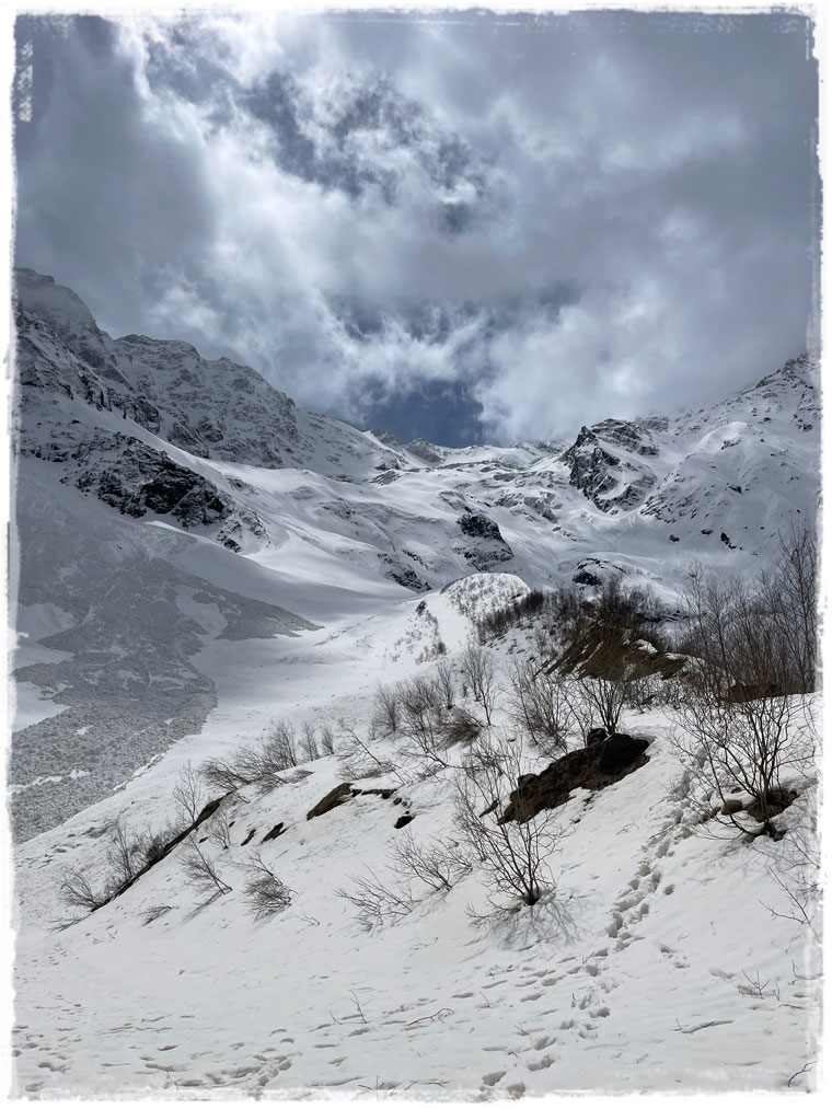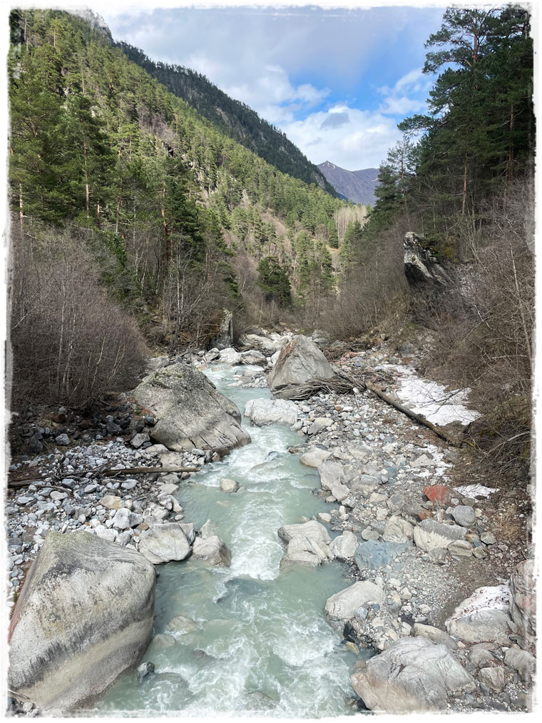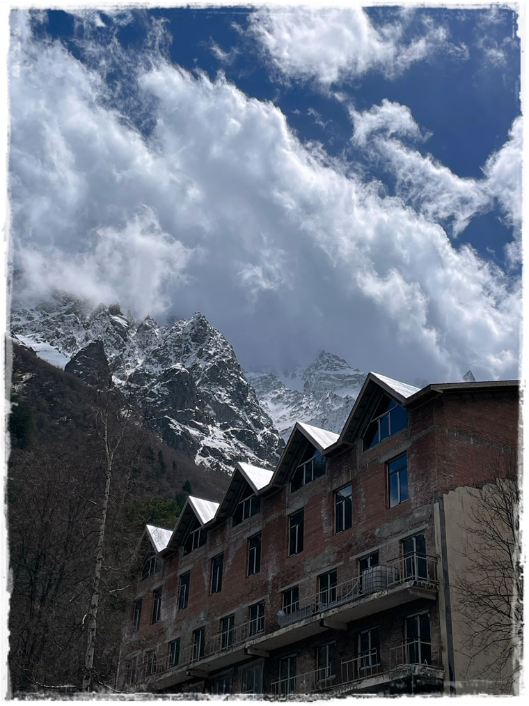 Второй причиной, почему я выбрала именно этот отель, стала его близость к канатной дороге, поднимающей к леднику. Ну сами посудите, быть в горах и к ним не подняться — несусветная глупость. Поэтому я решила не засиживаться и с самого утра направилась к станции подъемника. Поскольку большинство не живет в непосредственной близости от ледника, а приезжают из соседних сел, либо аж из самого Владикавказа, в это время на канатке еще никого из посетителей не было. Увидев меня, работники тут же засуетились и я стала первой, кто в этот день сел в кресло, кто поднялся на смотровую и кто ступил на подтаявший майский снег. Представляете, каково это — быть с горами абсолютно наедине?! Отвечаю — непередаваемо!!!Внизу меня сразу предупредили, чтобы с площадки никуда не уходила и даже не думала пытаться выше забраться. Горы и без того штука коварная, а в мае, когда на поверхности снег выглядит вполне надежно, но в мгновение ока может под ногами провалиться, лучше не экстремальничать и не рисковать. Я к рекомендациям местных без колебания прислушалась.Площадка наверху небольшая и когда туда постепенно начали подниматься другие путешественники, после полного единения с природой, даже от их присутствия и разговоров (читай криков: «Миш, сфоткай меня здесь! И здесь! Не так близко! Смотри, чтобы второй подбородок не видно было! И чтобы ноги длинные…») сразу захотелось сбежать. К счастью, к этому моменту я уже воздухом надышалась и красотой налюбовалась. И в обратном направлении снова на подъемнике была совсем одна. Итого времени на знакомство со Сказским ледником ушло примерно 1,5 часа (20 мин. подъём + 20 спуск + полчаса на созерцание красоты).Но нельзя же было весь оставшийся день просто на территории отеля (пусть и очень красивой территории) просидеть. Так что, немного отдохнув и просушив после снега обувь, отправилась я на лесную прогулку по расположенной недалеко экотропе. О существовании тропы мне охранник в отеле подсказал, в противном случае, просто так по чаще я бы, естественно, лазить не пошла.Как позже оказалось, место это для прогулки популярное и сюда даже специализированные группы из города привозят. Во как! Дело всё в том, что в гуще леса запрятано святилище Реком — сакральное для осетин место. При посещении обязательно обратите внимание, что святилище разделено на две части — женскую и мужскую и заходить на территорию священного места не своего пола запрещено. Многие этим пренебрегают, так же, как и соответствующим внешним видом (особенно в летнее время года). Уважайте чужие традиции! Я, например, пока через лес шла, несколько раз мужчин встречали, которые озвучивали, что дальше будет мужская святыня и мне туда нельзя. После заверения, что об ограничениях мне известно и нарушать их я не намерена, с пожеланием приятной прогулки мы расходились дальше по своим делам.