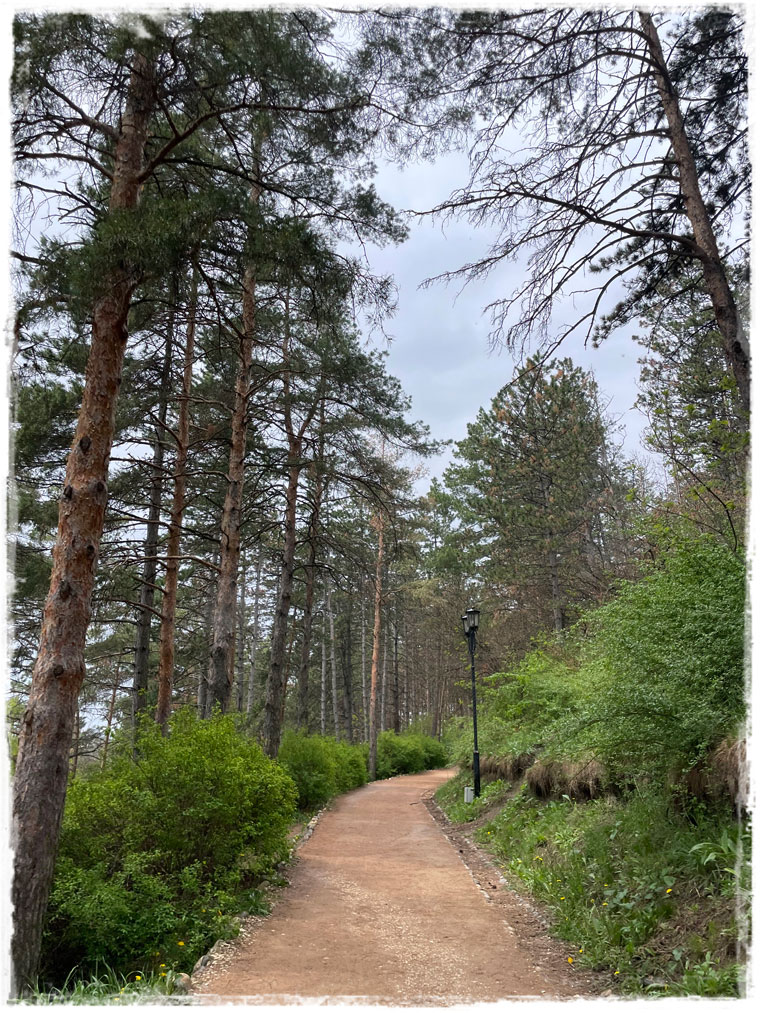 Вполне логично, что не один только парк изначально был в моих планах на Кисловодск. Поначалу я вообще здесь в отеле оставаться намеревалась. Но ценник оказался значительно выше, чем в Ессентуках, и чего-то приличного за разумные деньги найти не удалось. В результате, стоило мне выйти на ЖД вокзале (а сюда из Ессентуков я добиралась на электричке), все сожаления по поводу отсутствия подходящего жилья тут же улетучились. Кисловодск город, бесспорно, красивый, но… сколько же здесь людей! Не скажу, что в Ессентуках совсем безлюдно, но ни в какое сравнение со здешними толпами не идет. Поскольку погода в этот день была пасмурная и по прогнозу значился дождь, я понимала, что времени на прогулку мало и обойти всё намеченное вряд ли получится. Следовательно, пришлось сразу выбрать, что является первоочередным. Лично для меня это всегда природа, природа и еще раз природа! Поэтому не мешкая, пока не полило, я сразу же заскочила в такси и направилась в Кисловодский национальный парк.Самой заветной мечтой в парке для меня была канатная дорога, на которой я планировала подняться к смотровой площадке, чтобы обратно, к Долине роз, спуститься уже пешком. Вот только канатка почему-то оказалась закрыта. Возможно, из-за погода, а может по другим причинам. На станции каких-либо объявлений по этому поводу найти не удалось. Пришлось идти в горку на своих двоих, да еще и под периодически накрывающим дождем. В итоге до самого пика я не дошла. В хорошую погоду, скорее всего, это была бы приятная и не утомляющая прогулка, но когда мокро, холодно и голодно (а с кафе в парке оказалось, на удивление, напряженно), сил топать в гору просто-напросто не хватает.