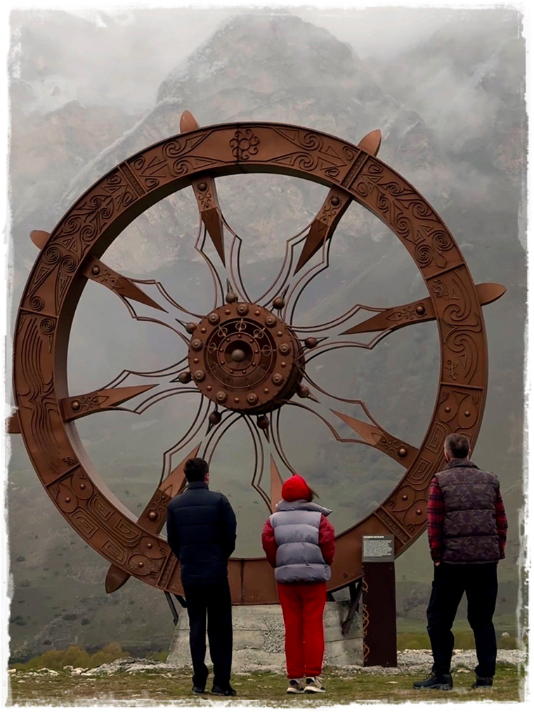 День 3. Поездка по горам:  Лавочка счастья ⇒ Монумент Уастырджи ⇒ Арт-объект Буква Ӕ ⇒ Даргавс ⇒ Колесо Балсага ⇒ Мидаграбинские водопады ⇒ Качели ⇒ Башня Курта и Тага ⇒ заселение в отель Роза ветров